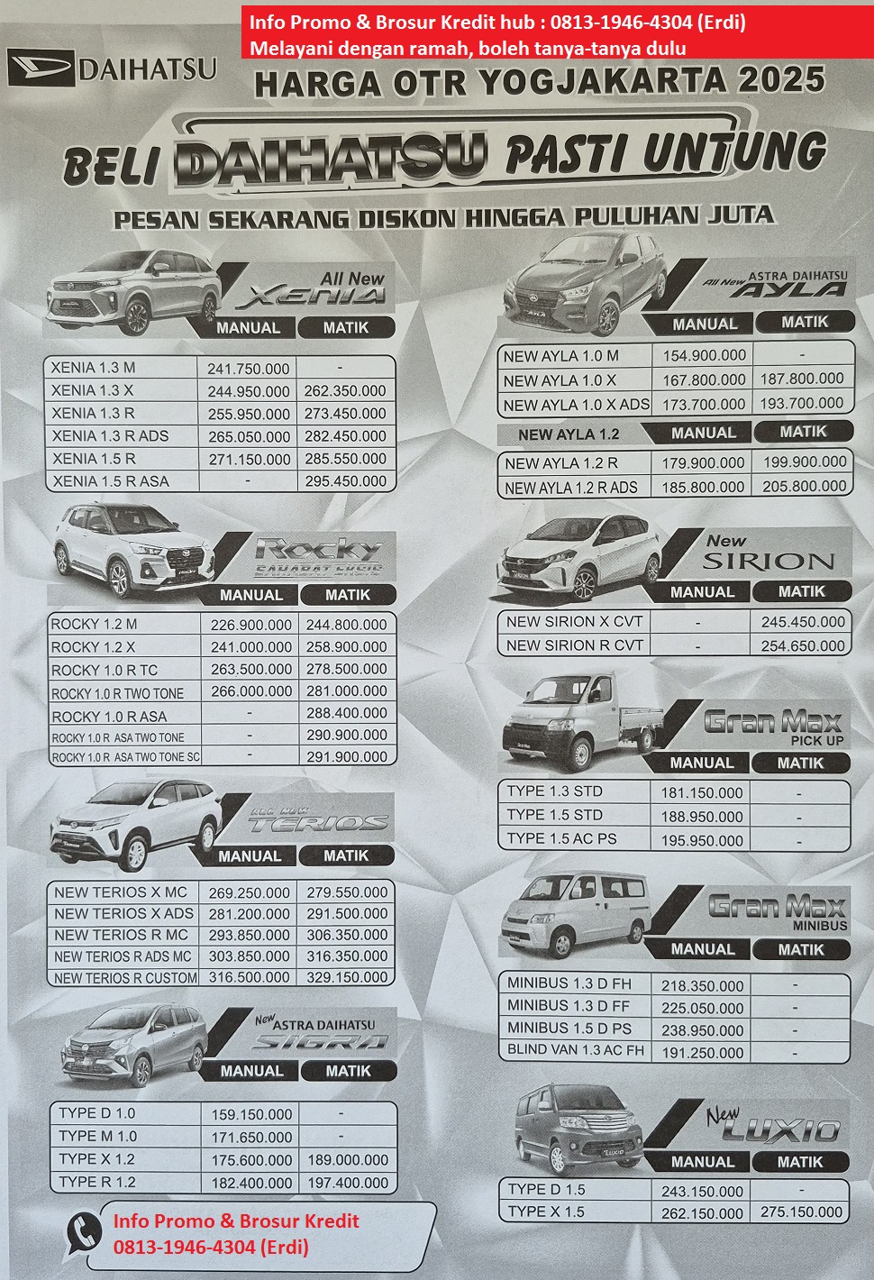 Salah satu daya tarik terbesar Daihatsu Sigra adalah harga jual yang kompetitif di kelasnya. Dengan kisaran harga mulai dari Rp150 jutaan hingga Rp190 jutaan , mobil ini menawarkan nilai terbaik untuk konsumen yang menginginkan kendaraan fungsional dengan fitur lengkap. Selain itu, jaringan layanan purna jual Daihatsu tersebar luas di seluruh Indonesia, membuat proses servis dan perawatan menjadi lebih mudah serta terjangkau. Suku cadang yang murah dan mudah didapatkan juga menjadi alasan mengapa banyak keluarga memilih Sigra sebagai mobil utama.