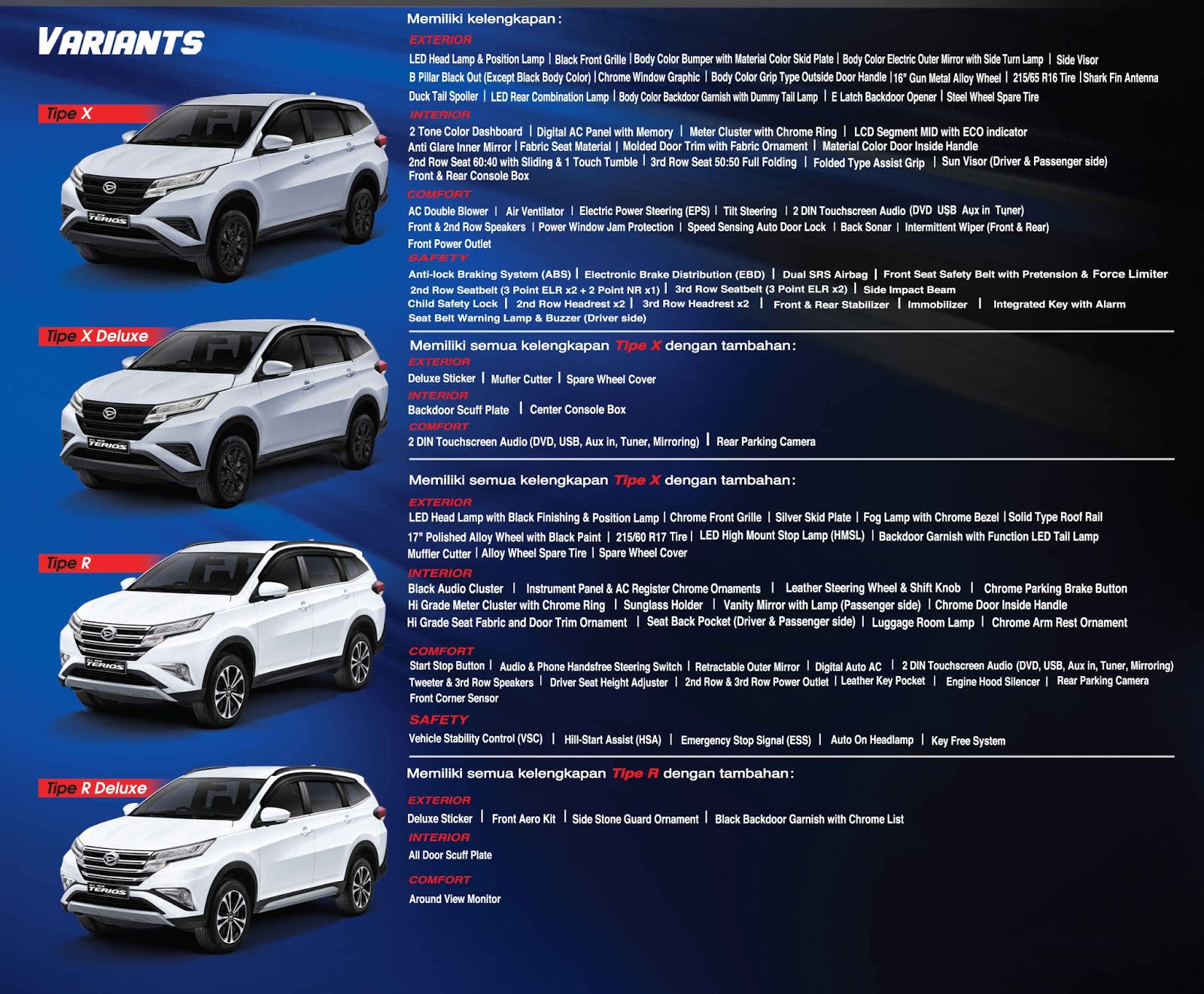 | Mesin | Mesin Terios tangguh, kuat stabil, teknologi drive by wire dan dual vvti |